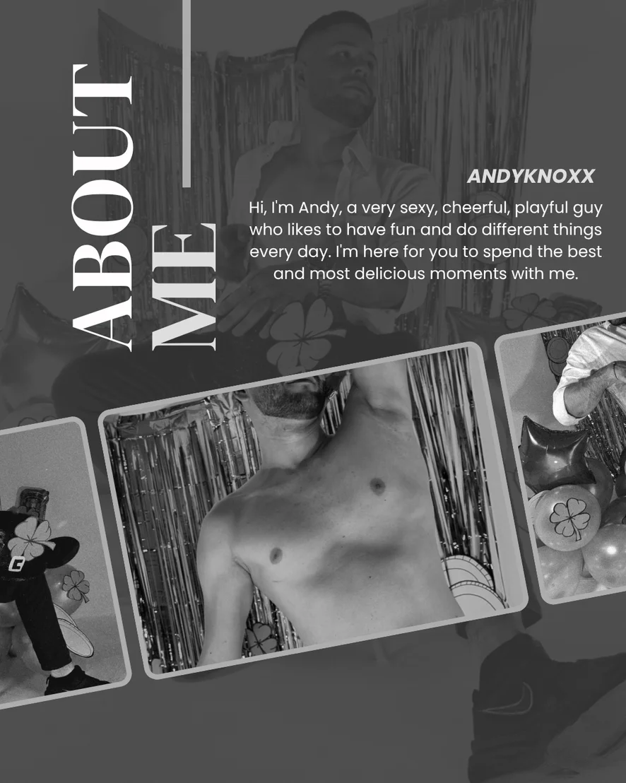 Hi, I'm Andy, a very sexy, cheerful, playful guy who likes to have fun and do different things every day. I'm here for you to spend the best and most delicious moments with me.